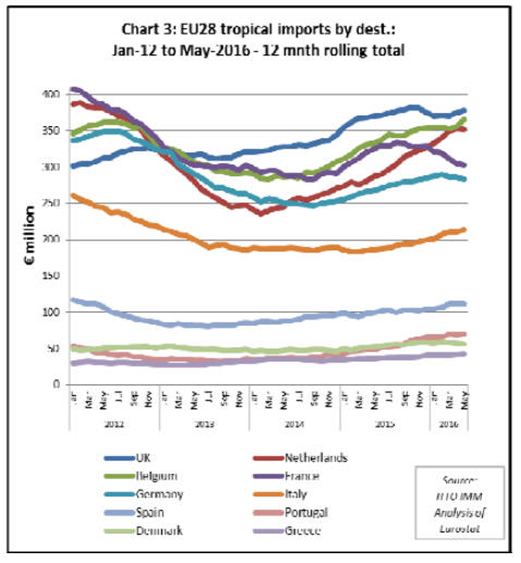 from tropical countries. Total imports in the 12 months to