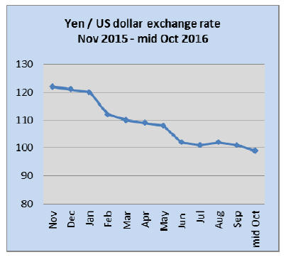 October the yen flirted with the 99/dollar level, the