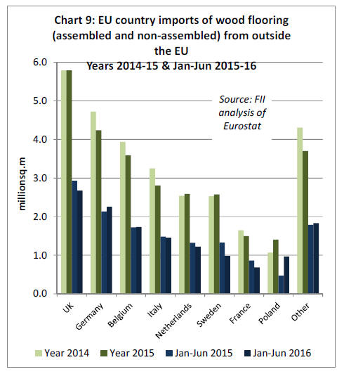 In 2015, EU wood flooring imports from non-EU