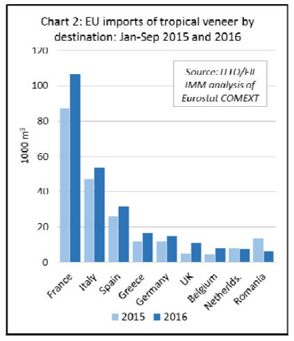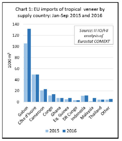 Gabon, the leading supplier, increased 25% to 131,500 m3