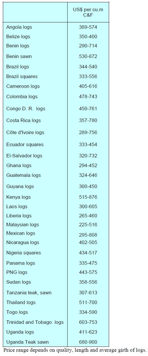 Source:ITTO'  Tropical Timber Market Report