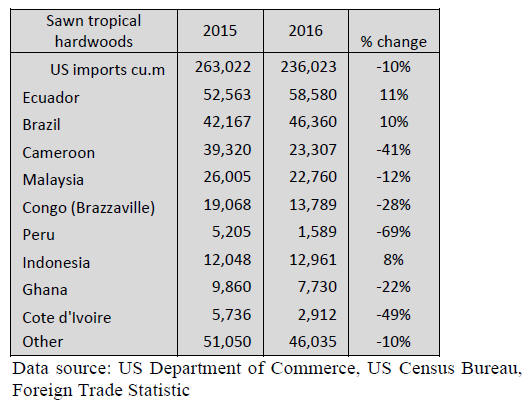 Tropical sawnwood imports from Brazil and Ecuador grew