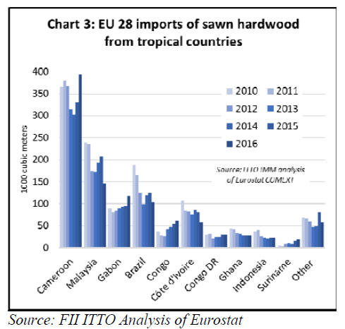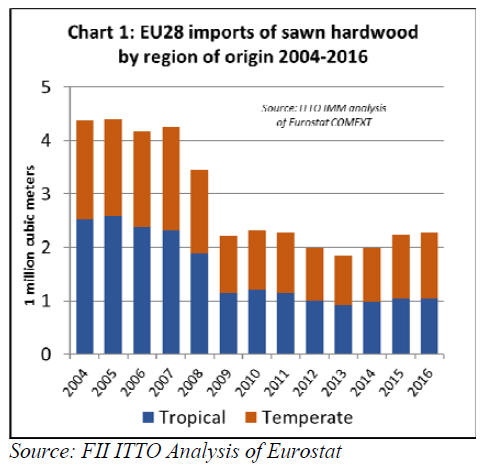 In 2016, EU imports of tropical sawn hardwood were 1.04