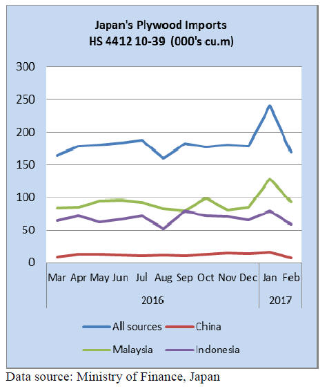 27.6 % less. 65,600 cbm from Indonesia, 15.1% less and