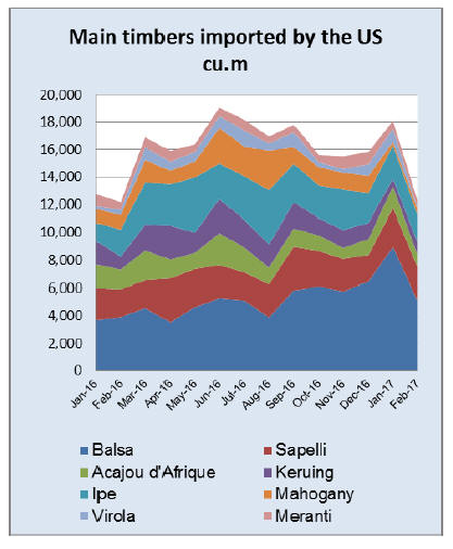 February due to lower volumes of sapelli (1,334 cu.m.)