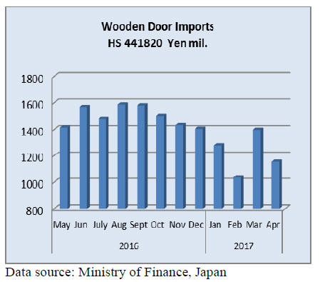 Japan¡¯s April wooden door (HS 441820) imports dropped