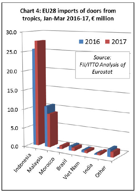 In the first quarter of 2017, EU imports of wood doors