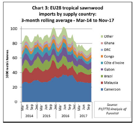 following a sharp dip in EU imports of tropical sawn