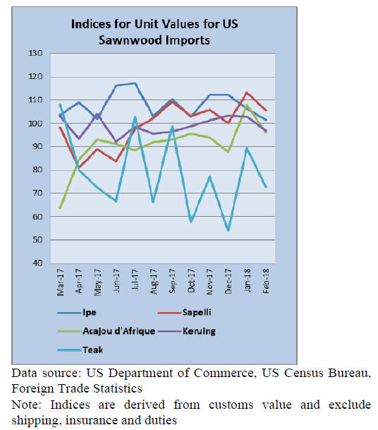 with ipe sawnwood imports decreasing 15% from January