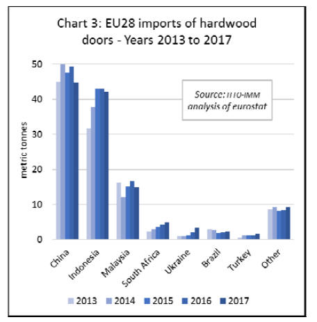 In 2017, EU imports of wood doors fell 9% to 44,700 MT