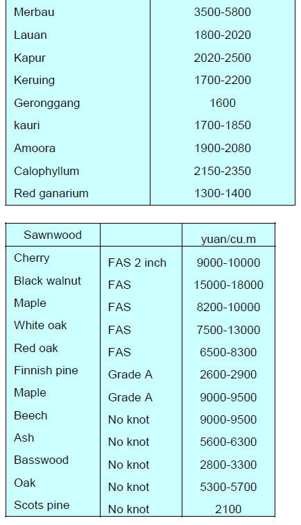 China¡¯s sawnwood imports were 8.29 million cubic metres