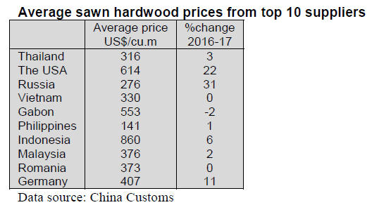 sawnwood was US$269 per cubic metre, up 6% on 2016.