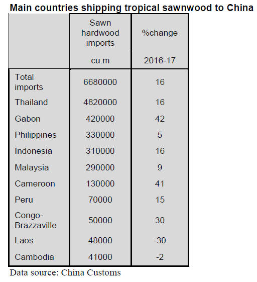 China¡¯s tropical sawnwood requirements in 2017 namely,