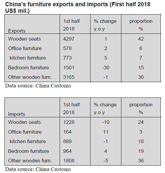 In the first half of 2018 the value of China¡¯s furniture