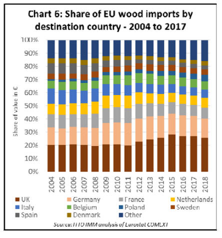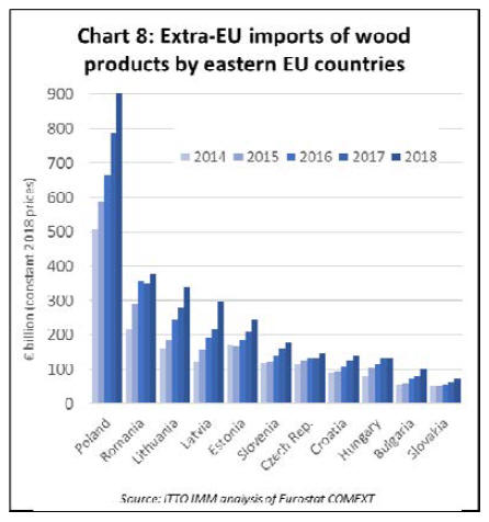 in 2018 increased from Russia (mainly plywood), Ukraine