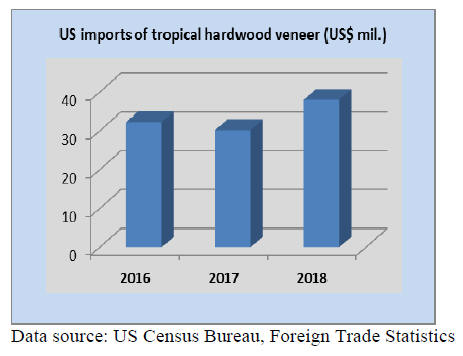 Imports of tropical veneers in 2018 expanded 26% over