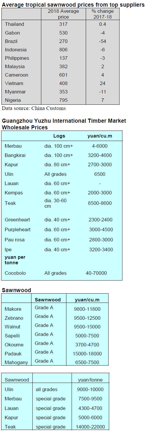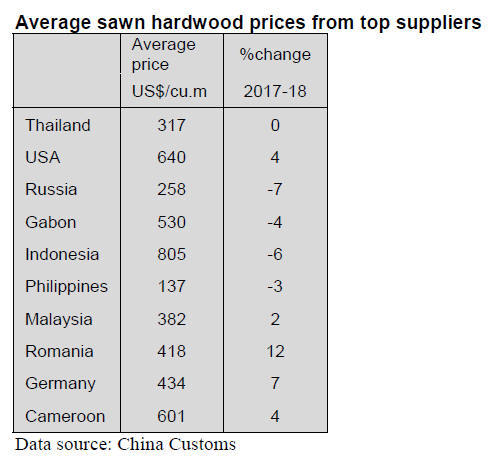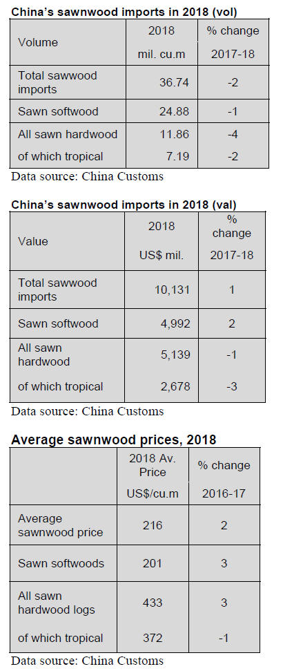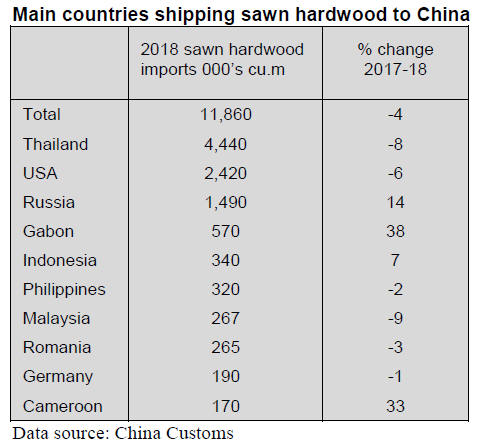 Sawn hardwood imports fell 4% to 11.86 million cubic