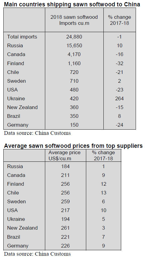 per cubic metre, up 2% on 2017. Both sawn softwood and