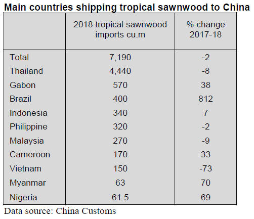 sawnwood imports from Myanmar, Nigeria, Gabon and