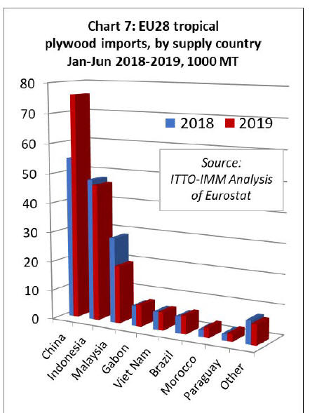 hardwood plywood increased from 315,000 m3 in 2016, to