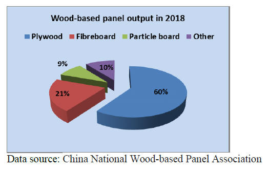 Of the total, output of plywood, fibreboard, particleboard and other wood-based panel was 179 million cubic metres, 62 million cubic metres, 27 million cubic metres and 31 million cubic metres respectively, accounting for 60%, 21%, 9% and 10% in 2018.