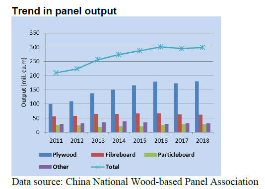 It has been reported that the output of wood-based panel products in China was about 299 million cubic metres in 2018, a year on year increase of 1.43%.