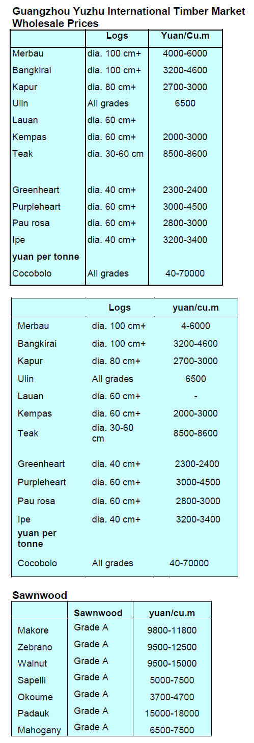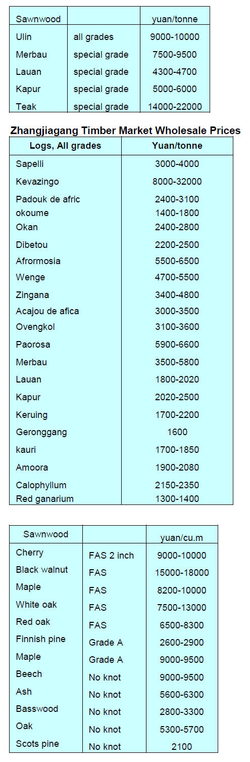 It is estimated that the total annual log volumes required for enterprises in the Centre will be around 2 million cubic metres and the value of imports will be as much as RMB2.2 billion.