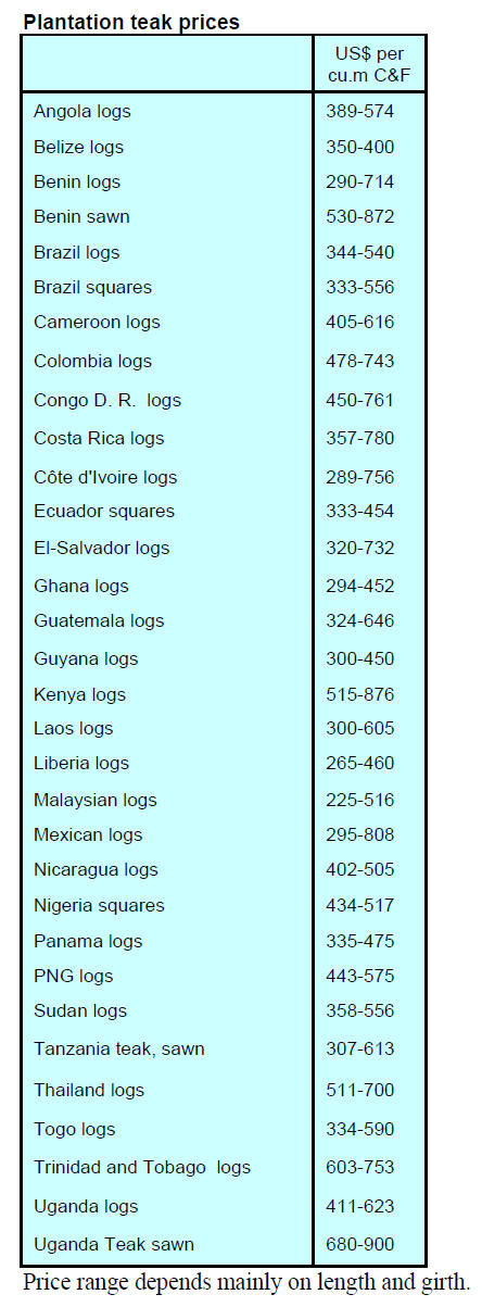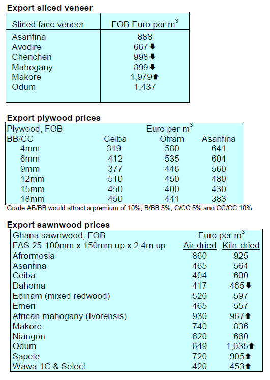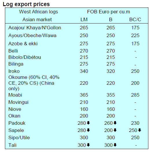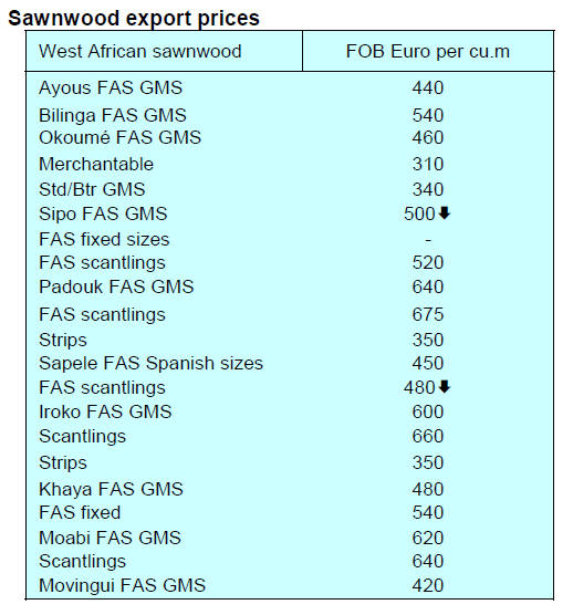 timbers. Over the past weeks FOB prices for sipo, sapele,