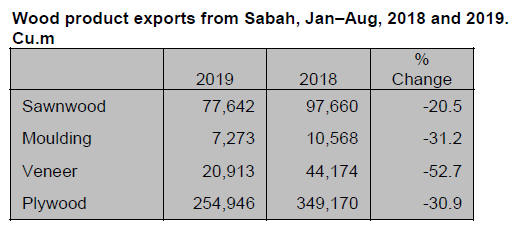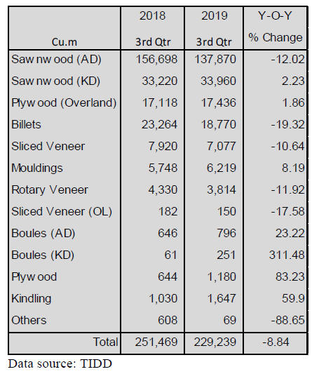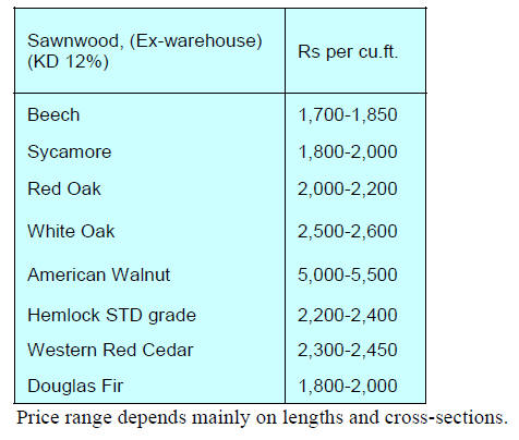 sawnwood (60%), kiln-dried sawnwood (15%), billets