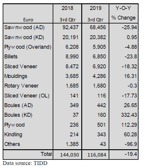 reached totaled 229,239 cu.m and were worth Euro116.08