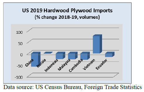 US imports of hardwood plywood fell by 7% in 2019 from a volume of 2.66