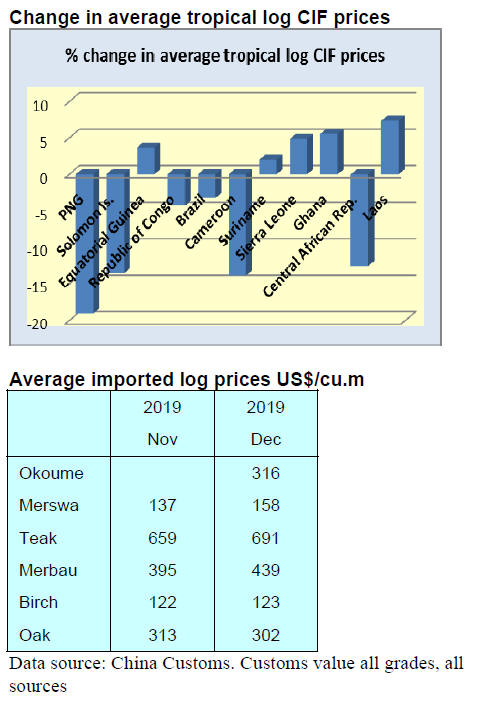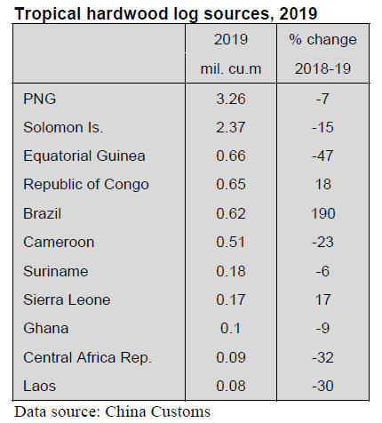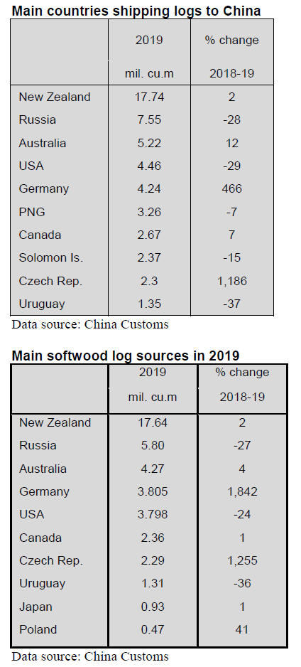 In 2019 hardwood log imports fell 15% to 15.31 million