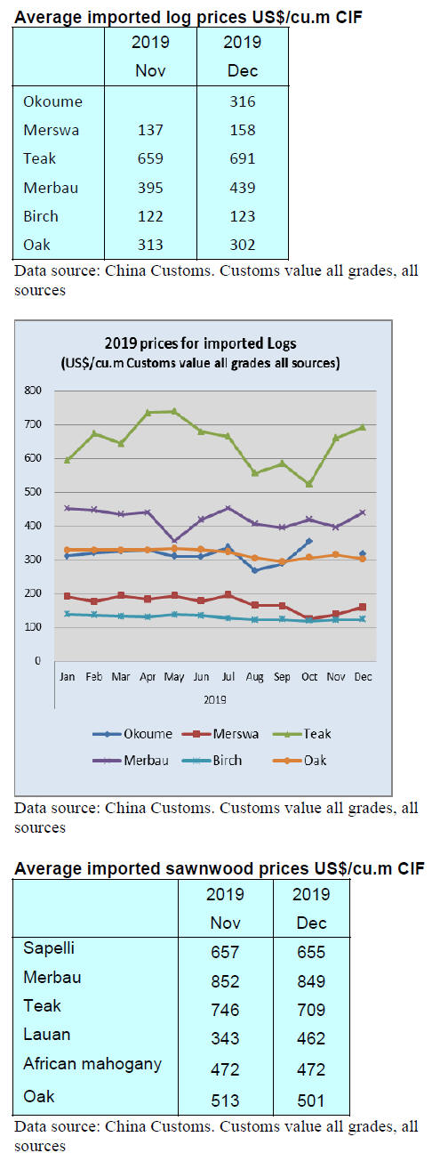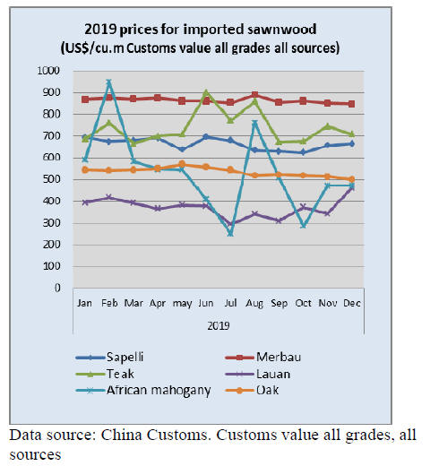 average prices for China¡¯s tropical sawnwood imports