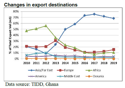 Ghana’s wood products between 2010 and 2013 after