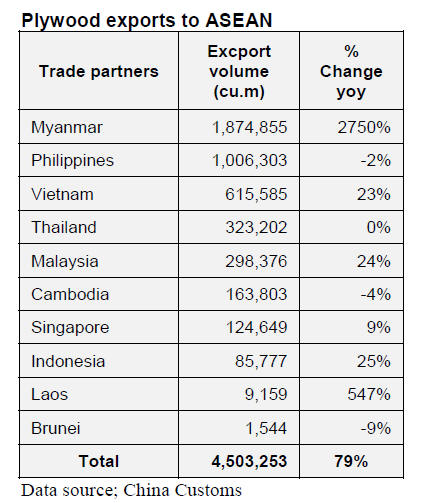 China¡¯s plywood imports from ASEAN in 2019 fell to