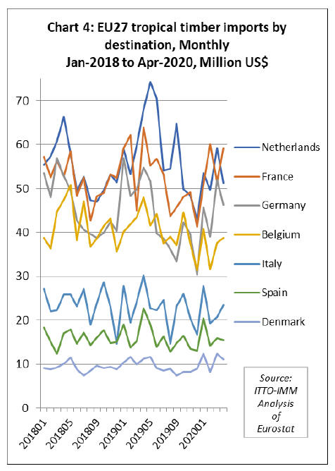 months of 2020. The EU imported 53,400 cu.m of veneer