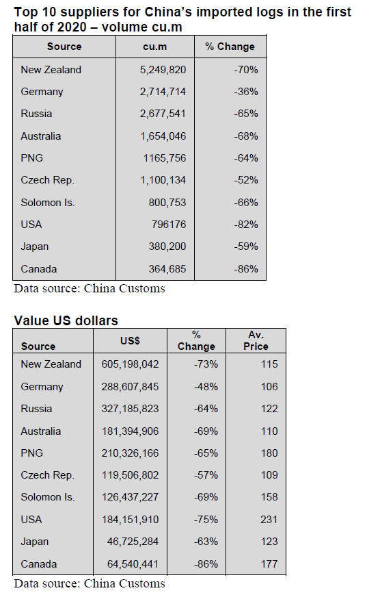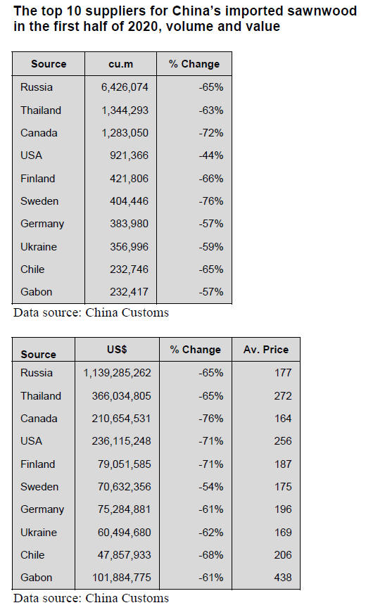 China¡¯s first half 2020 sawnwood imports totalled 13.83
