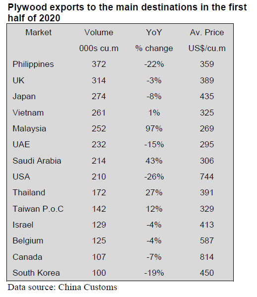 exports in the first half of 2020. 70% of China¡¯s plywood