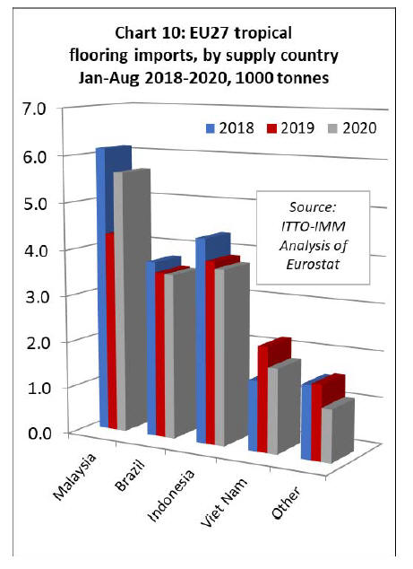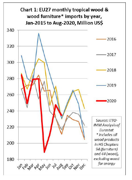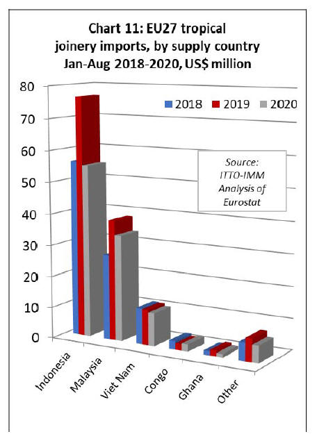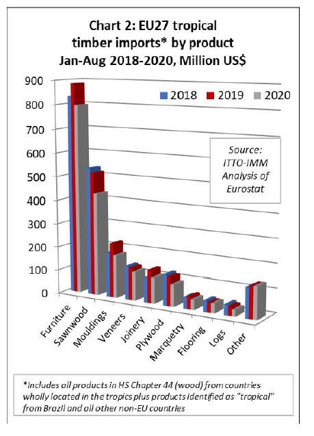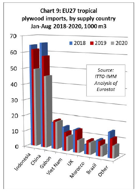 eight months of 2020. Imports fell 20% to 49,400 cu.m