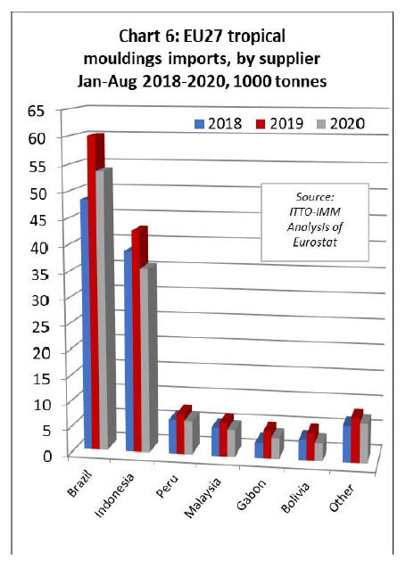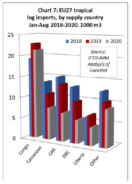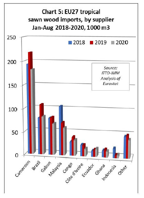 2020; down 17% from Cameroon to 182,500 cu.m, 24%