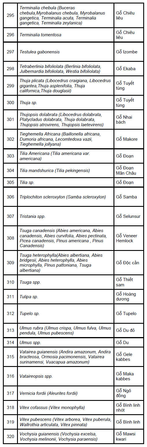 are classified by the Timber Industry Development