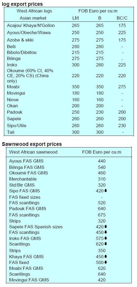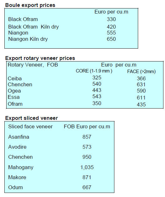 Over the past few months demand for okoume has waned