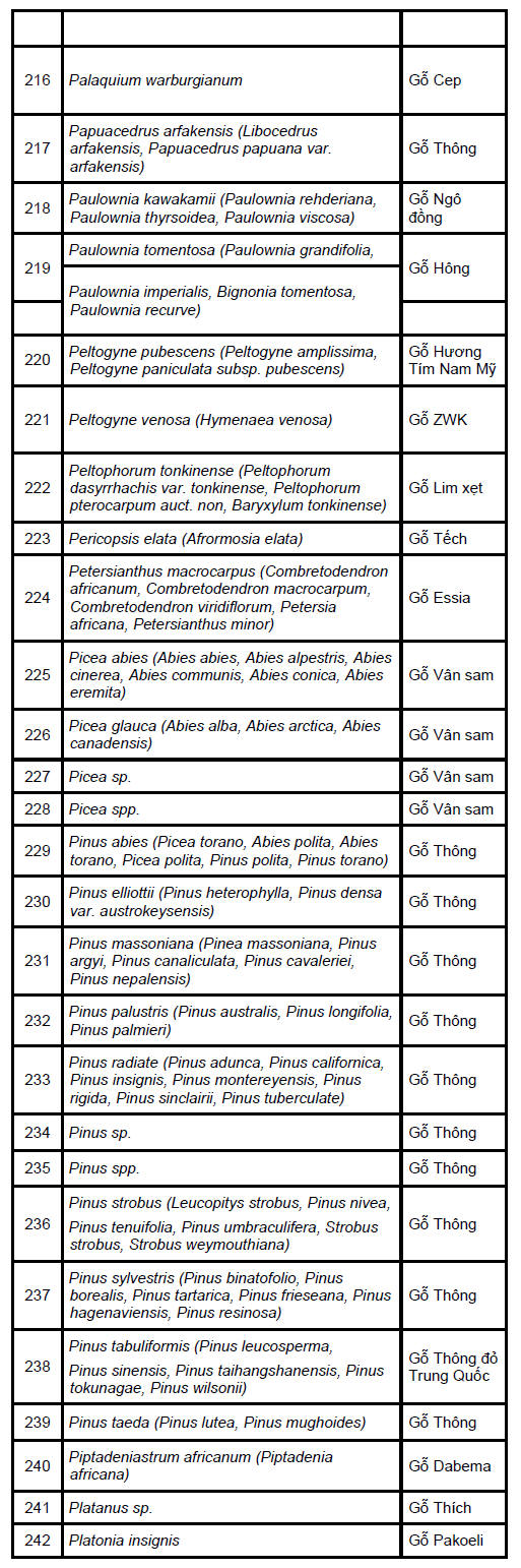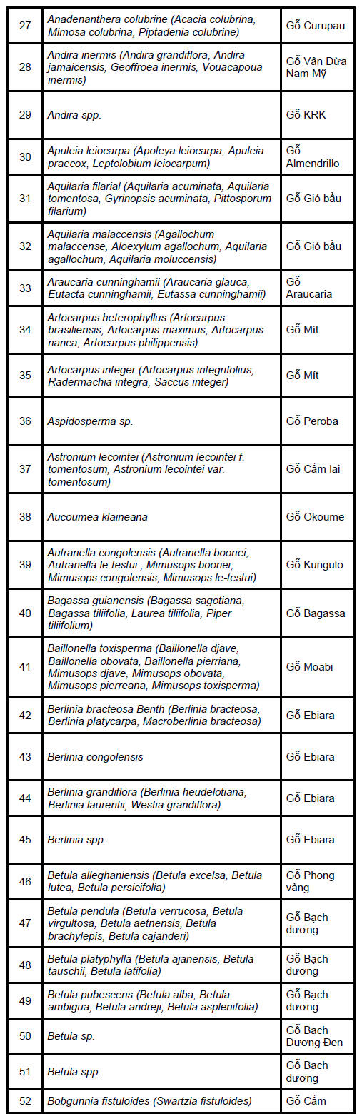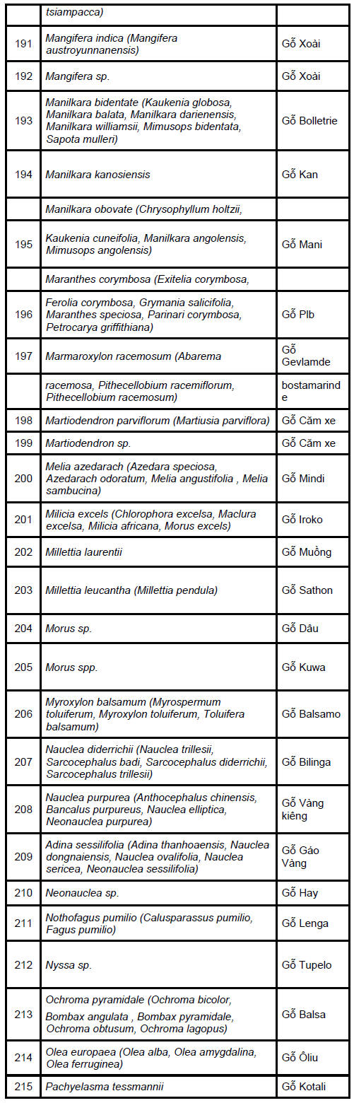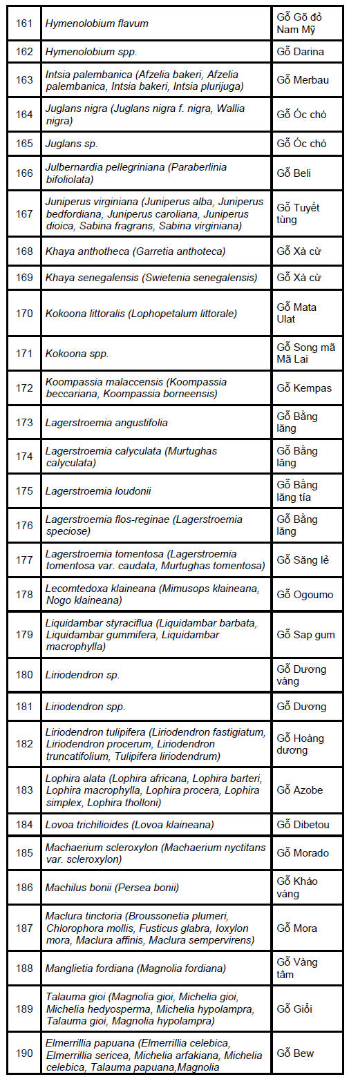 importers for species such as douka and moabi easing.
