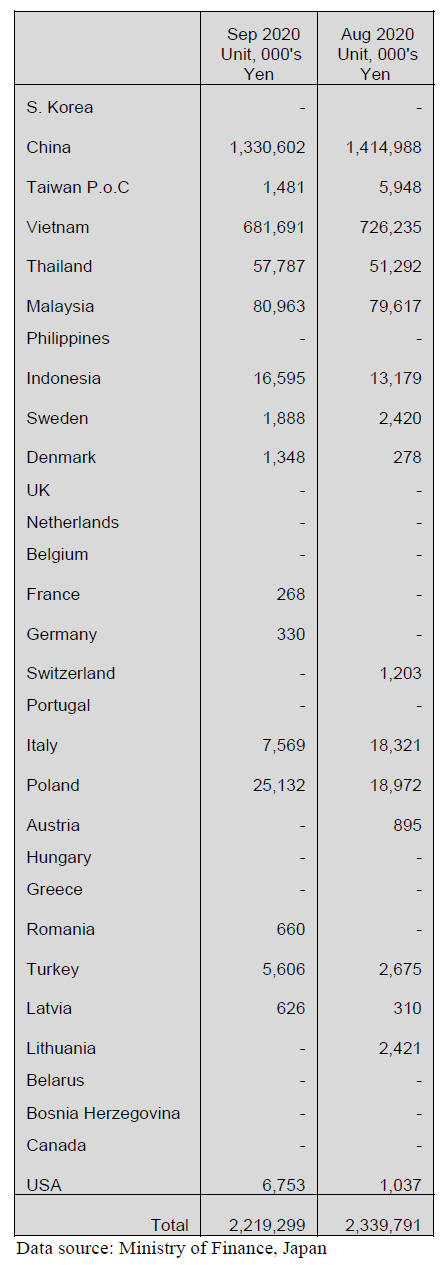 kitchen parts from China a year and 1.7 billion yen of fiber