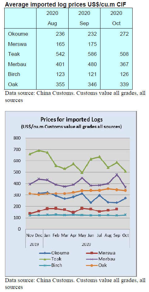 timber exports to China fell 7.6% to 19.2 billion yen.