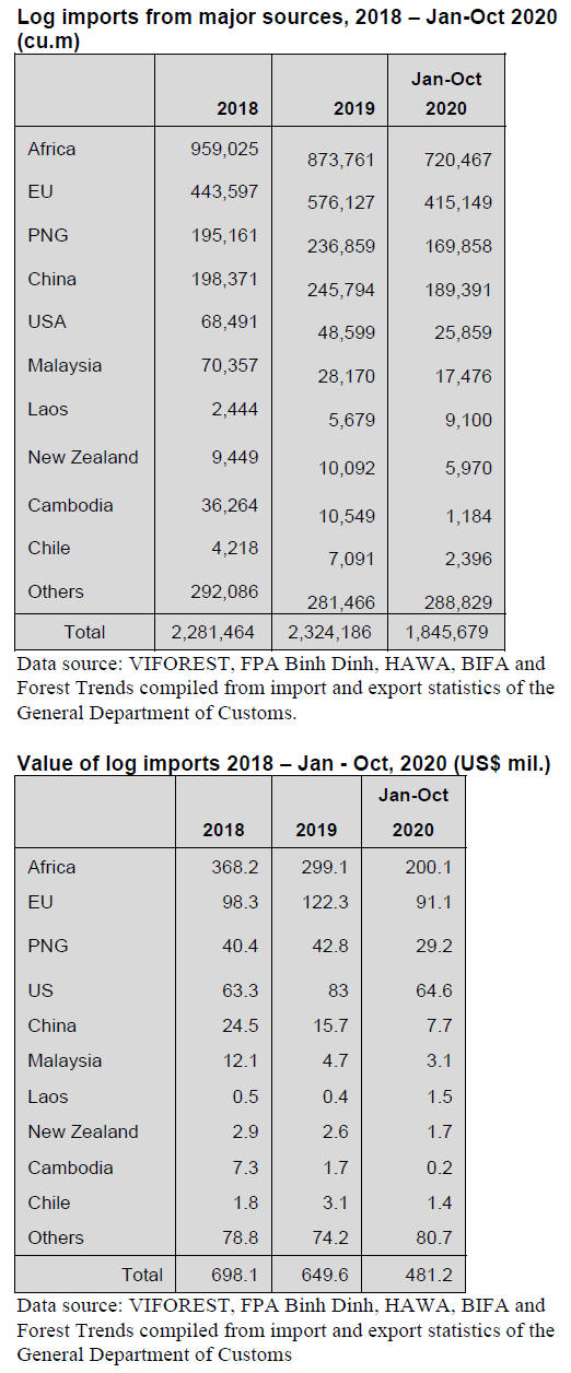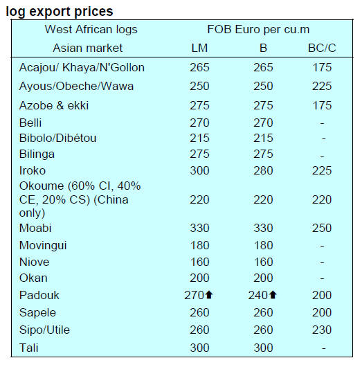 Reports from Gabon say log stocks are rising in the port