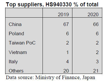 Japan¡¯s wooden furniture imports (HS940330-60) rose
