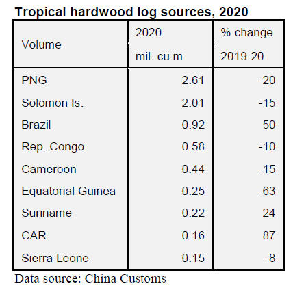 China imported tropical logs mainly from Papua New