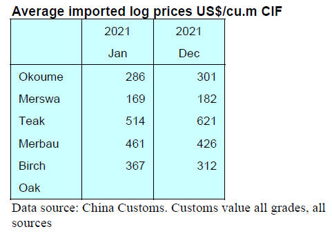 tropical logs for China. However, China¡¯s log imports