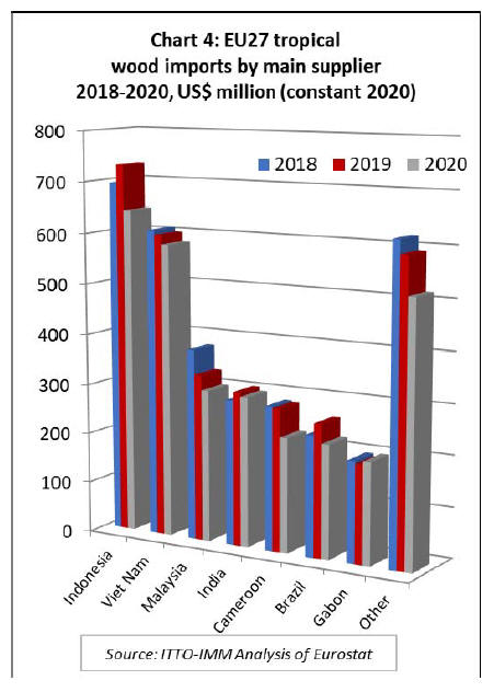 Imports were down 12% to 6,600 cu.m from Myanmar.